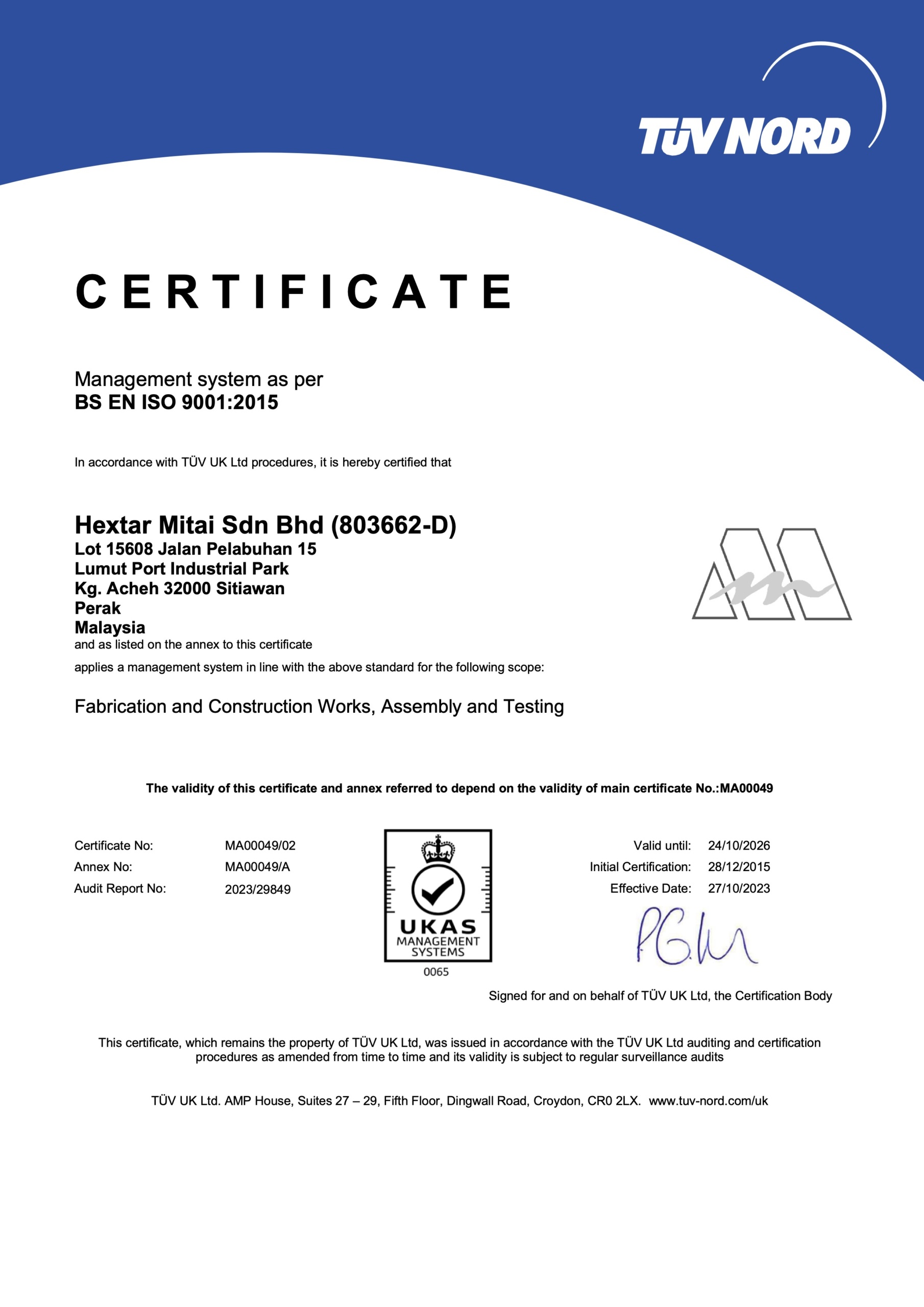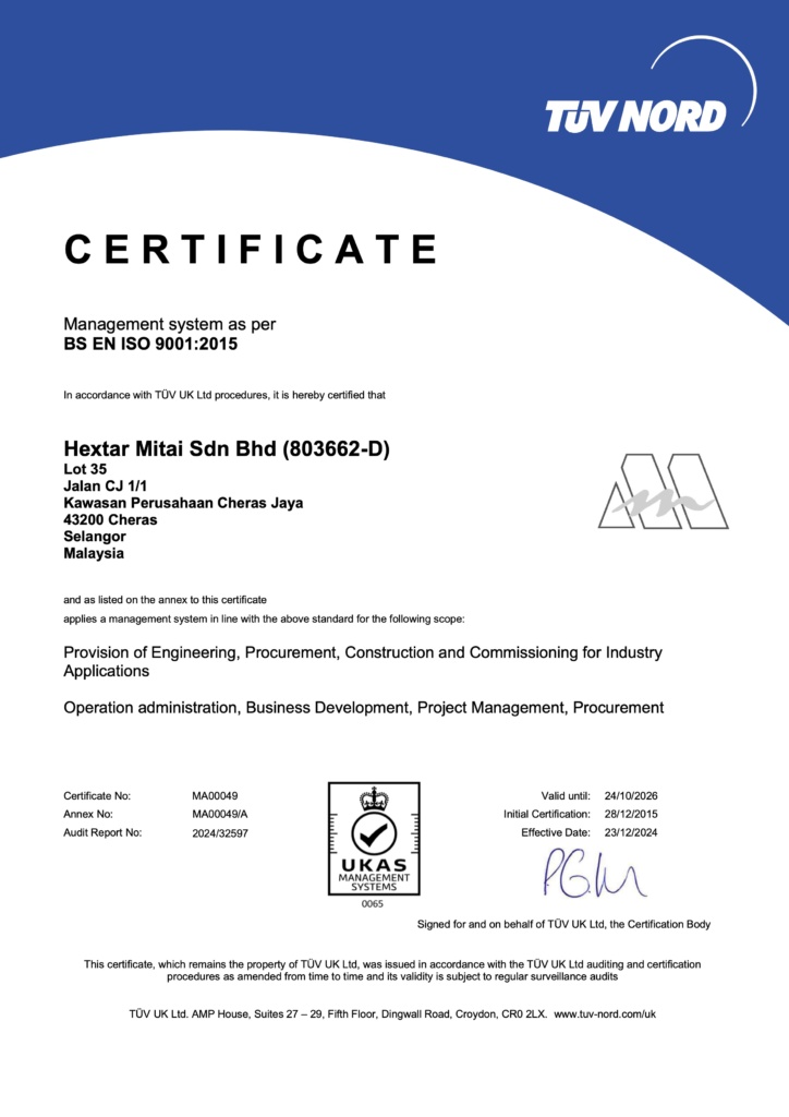 Hextar Mitai Sdn Bhd (HMT) was established in 2008. In March 2015, HMT became a subsidiary of Hextar Group. We are an ISO 9001:2015 certified company with the process of upgrading to AS 9100:2016 Rev D in progress
